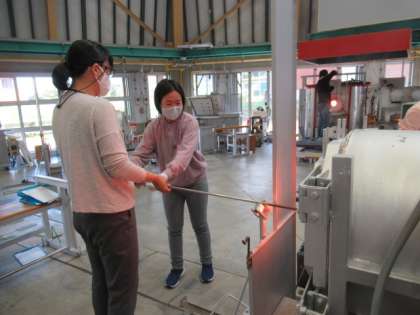 富山ガラス工房にて、卒業制作を行いました。色やデザインを選んで、自分だけのペーパーウェイトを作りました。