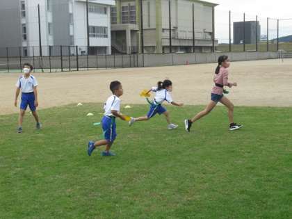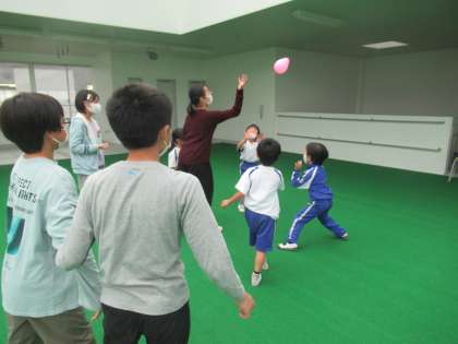 しっぽ取りおにごっこや風船バレーボールなどで6年生と遊びました。ルールを分かりやすく教えてもらい、楽しく活動できました。