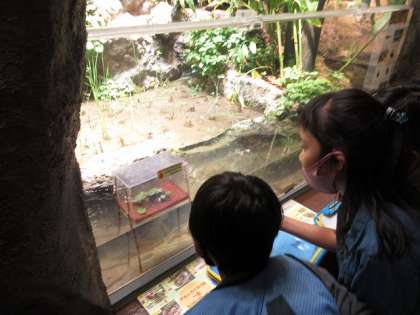 水族館では、大水槽で泳ぐ魚たちや、富山の海や川の生き物等を見てきました。子供たちはグループ活動を行い、友達と一緒にクイズを考えたり、お気に入りの魚の絵をスケッチしたりしました。