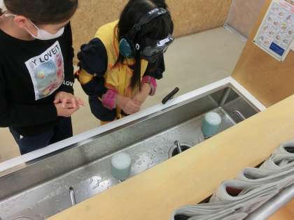洗面所で手を洗う体験をしてみると、体が思うように動かない歯がゆさを感じているようでした。