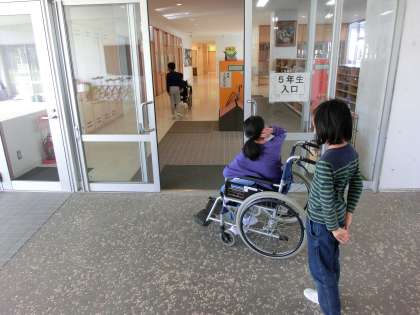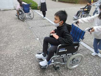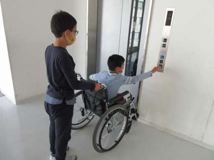 「段差がある時には車いすだと大変だな」、「エレベーターの低い所にもボタンがあるから押しやすかったよ」、「坂があると押すのが大変だな」など車いすを利用する側と介助する側を体験して多くのことに気付きました。