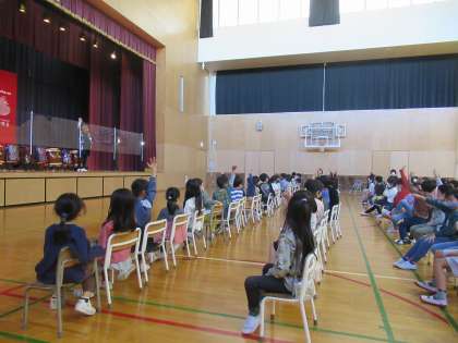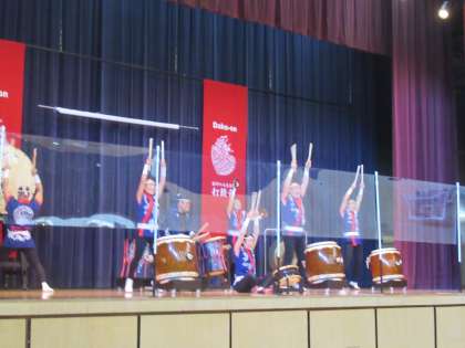 和太鼓集団「打鼓音」の演奏を鑑賞しました。迫力満点の演奏に引き込まれ真剣に聴いたり、和太鼓に関するクイズに答えたりする1年生。「芸術の秋」を楽しむ素敵な時間になりました。