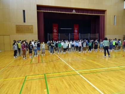 初めて学年で合唱練習を行いました。上のパートと下のパートに別れて並び方を決めました。1回目は少し緊張していましたが、だんだんと緊張がほぐれ、のびのびと歌えるようになってきました。