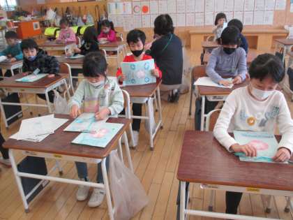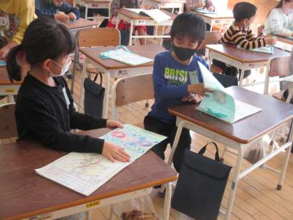 4月から観察カードに、発見したことやあさがおへの思いを書いてきました。今日は、そのカードをまとめ、綴りました。表紙には、大切に育てたあさがおへのお手紙も綴られています。「できあがって嬉しい。」「おうちの人に早く見せたい。」と、継続して取り組んだ自分に自信をもっている様子でした。