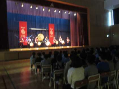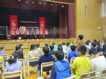 創作和太鼓集団「打鼓音」のみなさんのパフォーマンスを見せていただきました。5年生では、「聴き手として一緒に演奏を楽しむ」「自分たちの合唱の発表に向けて」「和太鼓・和楽器の音色やリズム、曲調について」などを意識しながら演奏会に参加しました。演奏はとても迫力があり、体育館中に広がる音の響きがとてもすてきでした。自分たちも発表会では、心や体育館が震えるような合唱を届けたいと、演奏会終了後に話していました。
