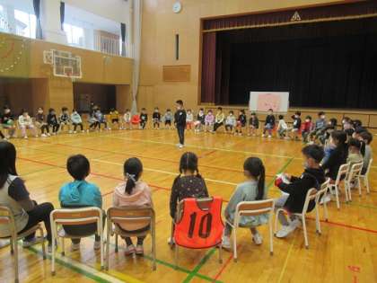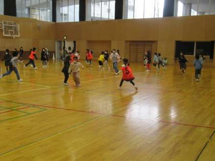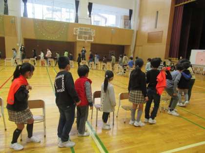 3年2組さんに招待してもらい、一緒に集会をしました。集会では、フルーツバスケットや爆弾ゲームなど全部で5つの遊びをしました。子供たちは、「楽しかった。また、一緒に遊びたい」と言っていました。