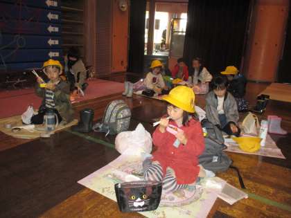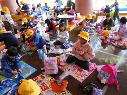 こどもみらい館でお弁当タイムをとりました。感染症予防のため、給食時のように静かにマナーよく食べていました。そして、家の人の心のこもったお弁当を食べて、にこにこ笑顔の子供たちでした。