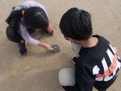 虫眼鏡を使って太陽の光を集めました。集めた場所が焦げたり、煙が出たり、穴が開いたりと子供たちは大興奮でした。