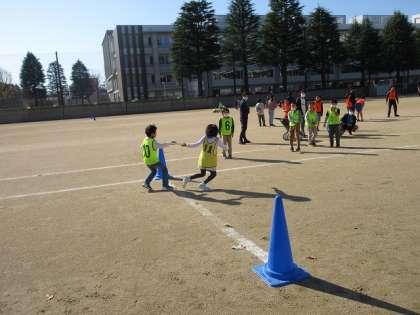 30秒のハンデをもらい、リレー対決をし、応援をしている子供たちも盛り上がりました。結果は5年生の勝ち!