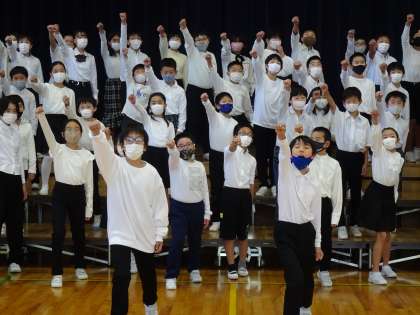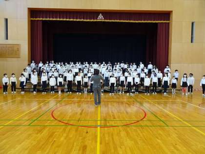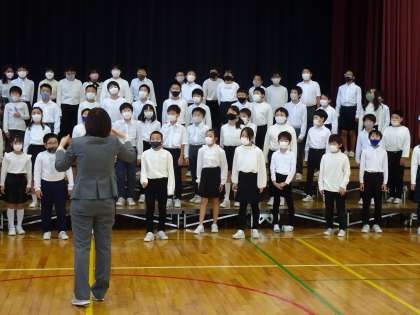 4年生にこれまで練習してきた成果を聞いてもらいました。初めて衣装も着用し、気持ちも引き締まります。心を込めて歌いました。