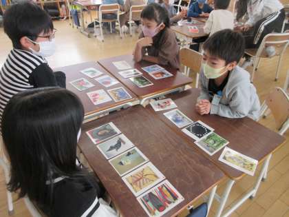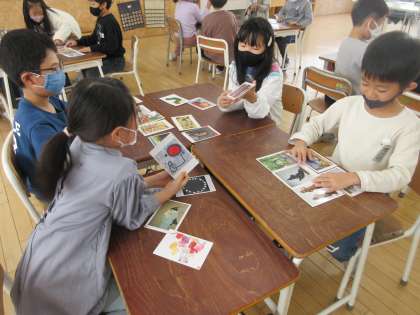 図画工作科の時間にアートカードを使って、様々な作品から感じることを伝え合いました。同じ作品でも、人によって感じ方が違うことに気づき、楽しく活動することができました。