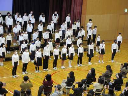 今年度、2度目の学習参観が行われました。子供たちは、今日までの成長を見てもらおうと張り切って学習にのぞみました。5年生は音楽会のために練習してきた合唱曲を体育館で披露しました。温かく見守ってくださる家族のみなさんの笑顔や拍手が、子供たちの努力に報いる最高のプレゼントになりました。