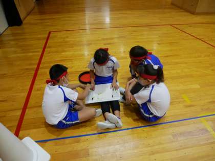 ディスクを投げることにも試合の流れにも慣れてきて、いよいよ各クラスのリーグ戦がスタートしました。チームで練習したり作戦を練ったりして、どうしたらディスクがつながるか考えながらゲームを楽しんでいます。
