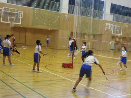 「バドミントンクラブ」は、2学期にダブルスのトーナメント戦を行いました。3学期はシングルスの試合を行うことを目標にしています。そのために、今は一人一人が目当てをもって熱心に練習に取り組んでいます。