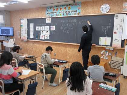 英語で挨拶をしたり、歌を歌ったりして楽しく会話の練習をしました。また、アルファベットを使ってビンゴゲームをしました。