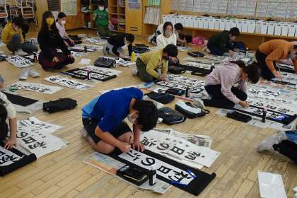 手本を見よく見て、ポイントを確認しながら、字の太さや大きさ、バランスに気を付けて書きました。前よりも上手になった自分の作品を見て、成長を実感することができました。
