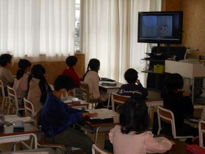 どの作品も身を乗り出して視聴する様子から、本の世界に引き込まれているのが分かります。毎日の読み聞かせの時間を、とても楽しみにしている1年生です。