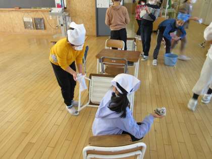 毎日使っている教室やオープンスペース、特別教室などを徹底的に清掃しました。普段手の届かないような机の脚や窓などもピカピカにすることができました。