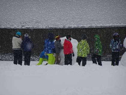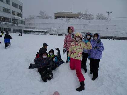 雪遊びの様子です。雪だるまを作ったり、ボールを使って雪の中で遊んだりしました。新雪の中に飛び込めたこともあり、満足げな子供たちでした。