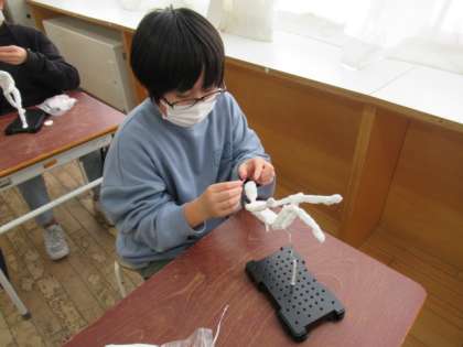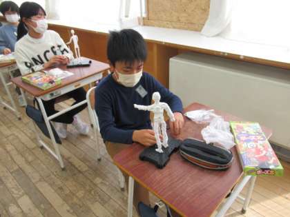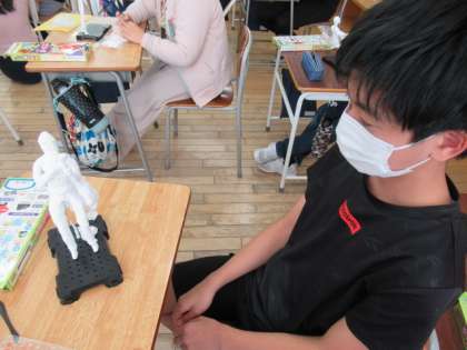 図工の時間では、自分の12年後の姿を想像して粘土で作品を作っています。自分の将来を具体的に考えて、作品作りに取り組んでいます。