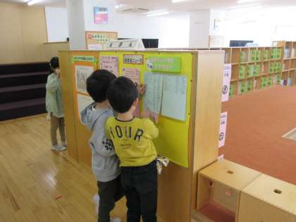 大雪で外に出られない日は、図書室で静かに読書をするのもいいですね。友達と一緒に、また一人で静かに、子供たちは思い思いに休み時間を過ごしています。新しく入った本のコーナーや、図書ボランティアのみなさんが作ってくださった人気の本の紹介コーナーなど、図書室には楽しい工夫がたくさんあります。