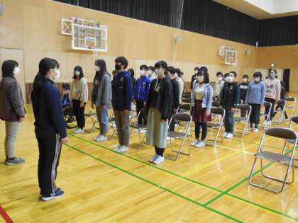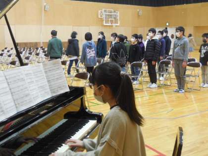 今日の卒業式練習は、入退場を行いました。前回に比べて確実に上手になっています。視線を上げ、背筋を伸ばし、堂々とした態度で入退場してほしいと思います。
