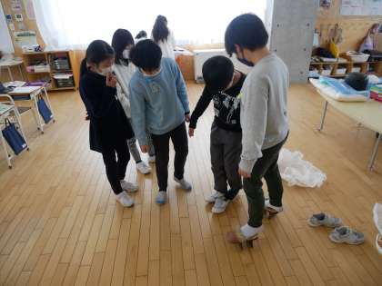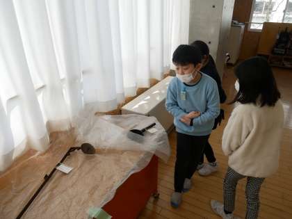 民族民芸村の方から昔の道具をお借りして、道具のうつりかわりについて調べました。実際に使ってみたり、インターネットを使ってこの道具は今の道具で言うと何になるのか調べたりしました。子供たちは今の道具の便利さを実感していました。