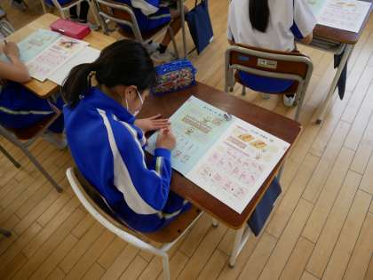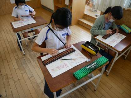 算数の最後の学習としてそろばんに取り組みました。子供たちは初めてのそろばんに苦戦しながらも、コツをつかんでくると、「おもしろい!」と楽しそうな様子でした。そろばんの仕組みや、簡単な計算の仕方などを学びました。