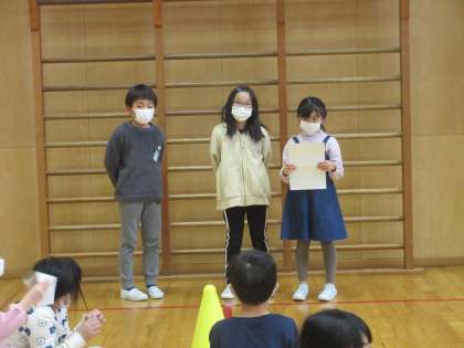 今のクラスで過ごす時間も残り3日となりました。これまでの楽しかった思い出や成長したことを話しながら、楽しく集会をしました。