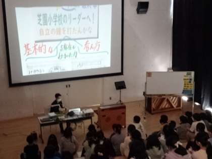 6年生は学年集会をして、6年生としての心構えや新しく始まった1年生のお世話について話をしました。今年は学年目標も自分たちで決めます。学年集会の後各学級でどんな学年目標にしたいか話し合いました。「自立」と「道」というキーワードが見えてきました。