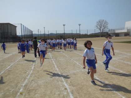 とてもよい天気の中、50メートル走のタイムを計りました。4年生最初のタイムなので、これから学習を重ね、タイムを縮めていきたいと思います。