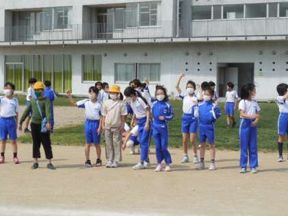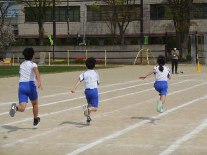 今日も50メートルのタイムを計測しました。昨日よりもタイムを縮めようと、最初のウォーミングアップにも力が入っていました。今日は、友達のがんばりを応援する子供たちもおり、温かい雰囲気の中で学習を行いました。