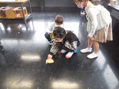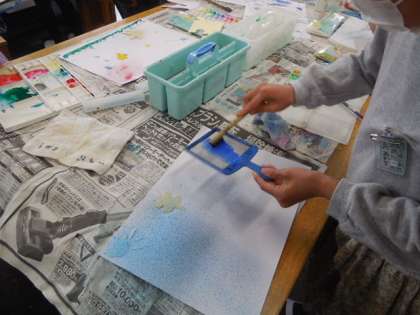 スパッタリングや吹き流し等、絵の具でいろいろな色つけの技法を試しました。最後に、しっかりと図工室の掃除をする姿も、とてもすてきでした。