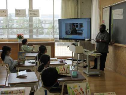 ダニエル先生と一緒に、世界の挨拶を学習しました。国によって、挨拶の言葉やジェスチャーが違うことに気付いて、楽しそうに友達と挨拶を交わしていました。