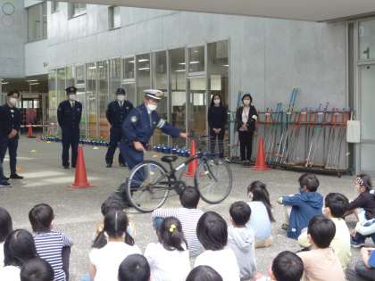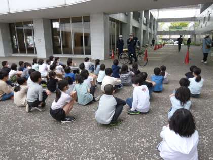 交通安全教室で、自転車の安全な乗り方について学習しました。「ブタハシャベルラ」の合言葉を教えていただきました。