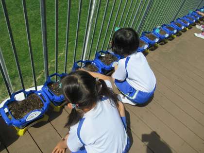 生活科の学習で、あさがおの種を植えました。