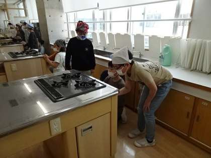 家庭科の学習では、お茶を入れました。活動に入る前に、ガスの使い方を練習しました。換気はできているか、火加減の調節はできるかなどを確認しました。