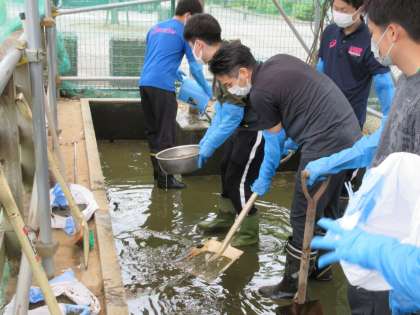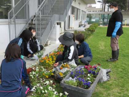 花壇に新しい花苗を植える準備と、カモの池そうじを教職員で行いました。カモの池は水を抜いて隅々まできれいに磨きました。子供たちの人気者、カモの「グミ」と「ビスケット」もきれいになった池に満足そうです。そして学校の花壇が新しい花々で彩られるのを楽しみにしています。