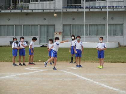 今日は、ソフトボール投げの測定を行いました。一人一人投げるフォームを意識しながら、今の力を発揮しようとがんばりました。