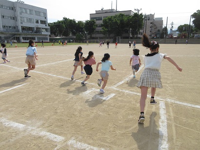朝のトレーニングが新しくなりました。子供たちが自分でスタート位置を決め、8秒間でゴールを目指します。8秒間で走れる距離をどんどん伸ばしていこうと、一生懸命走っていました。