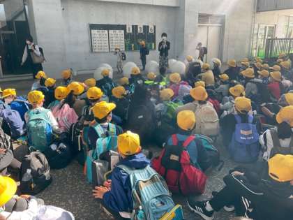 天気も良く、さわやかな日となりました。パサージュで出発式を行いました。2日間の宿泊学習の道づくりが始まります。