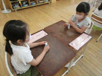 算数の学習では、たし算カードを使って計算練習を始めました。