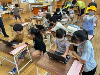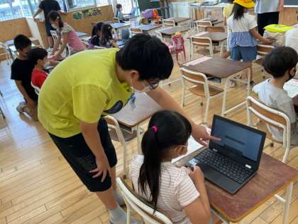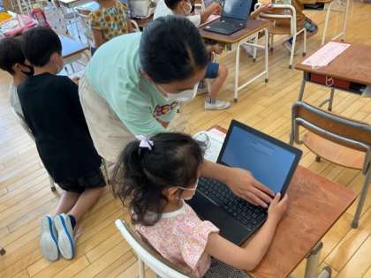 6年生は、朝、1年生の教室で、スポーツテストのアンケートの入力をサポートした後、一緒に朝のトレーニングに行きました。1年生と一緒に活動することが、6年生にとって楽しみになっています。