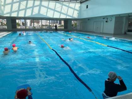プール開きで、初泳ぎをしました。透き通った水が気持ち良く、これからの水泳学習がますます楽しみになりました。