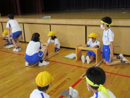 反復横跳びや握力等、4種目の体力テストの測定をしました。6年生とペアになり、やり方を確認しながら一つ一つの種目を一生懸命がんばっていました。