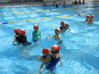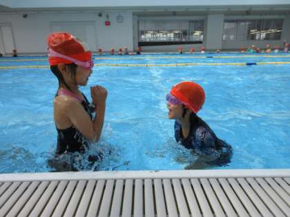水に段々慣れてきた子供たち。今日は、水中じゃんけんをしたり、輪っかくぐりや水中タクシーをしたりしました。子供たちの笑顔がたくさん見られました。