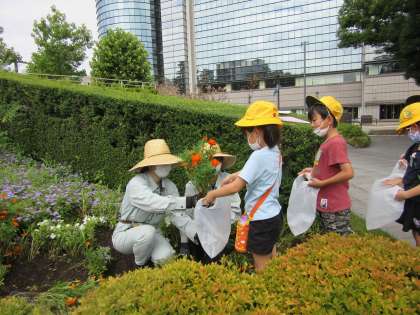 芝園のすてきの一つである花時計が、どんな風に整備されているかを知るよい機会になりました。いただいた花苗を「大切に育てたい」と大事そうに抱えて下校しました。