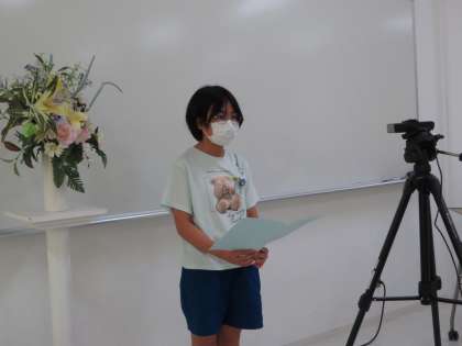 1学期の終業式が校内オンライン放送で行われました。校長先生から、1学期に見られた芝園っ子のすてきな姿を紹介してもらい、夏休み中も思いやりの心を大切にしながら元気に過ごすことを約束しました。また1、3、5年生の代表が、係の仕事やてつぼうの技、あいさつ運動など、1学期に頑張ったことを発表しました。