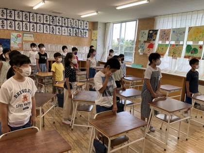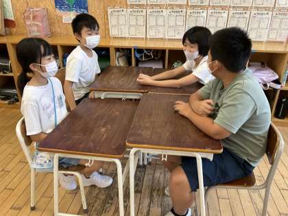 いよいよ2学期がスタートしました。オンラインで始業式を行いました。その後、夏休みの思い出をグループで話しました。
