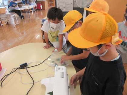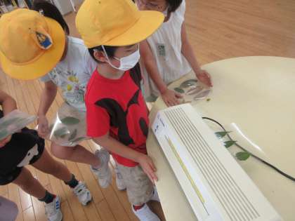図画工作科では、身の回りの自然をよく観察して、色や形から「お気に入りの葉」を探しました。大切な葉をラミネートで加工し、これから作品にしていきます。